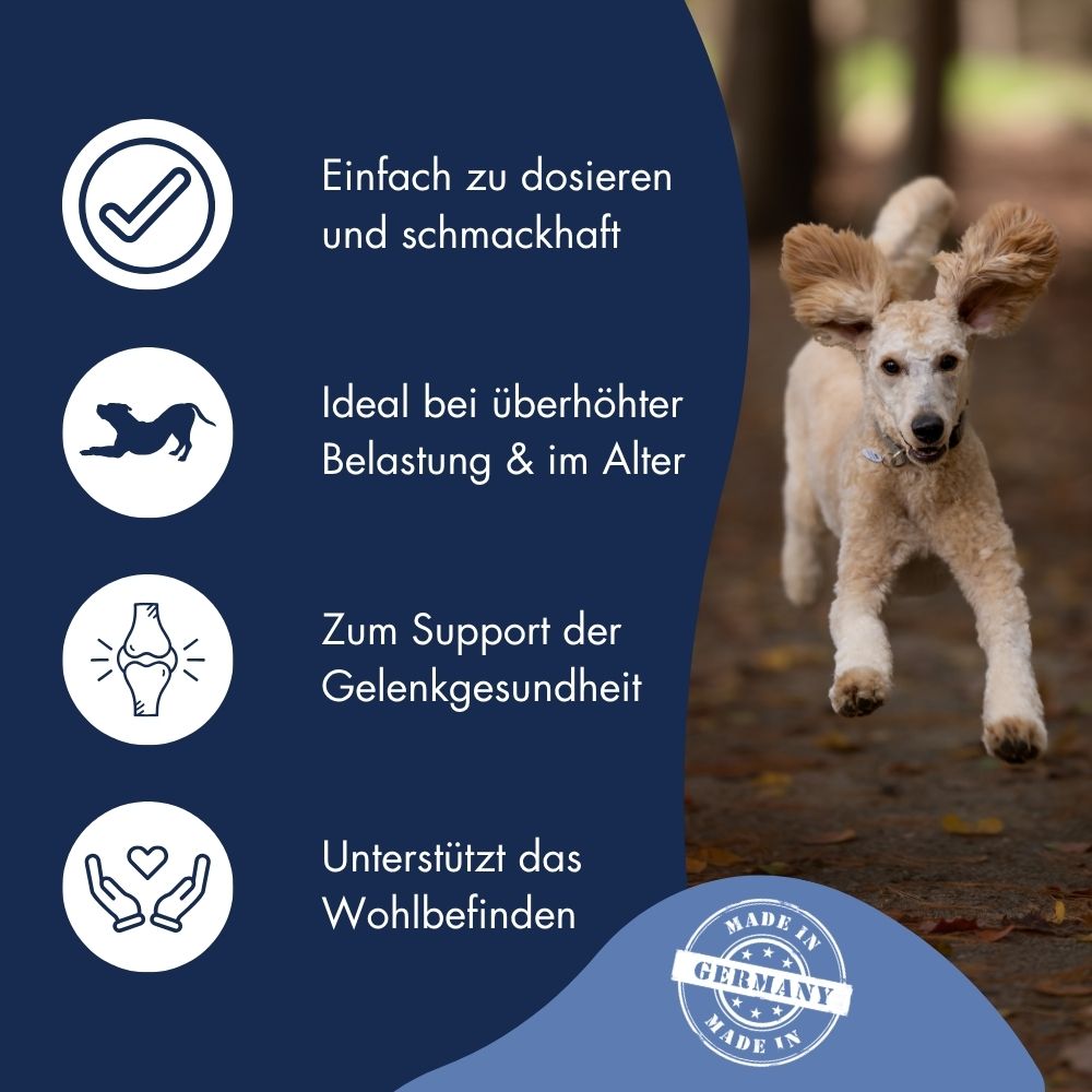 Die Gelenk Paste unterstützt gezielt die Gelenkfunktion und den Bewegungsapparat deines Hundes und deiner Katze. Mit bewährten Inhaltsstoffen wie Hyaluronsäure, Glucosamin und Chondroitin trägt sie zur Erhaltung von Knorpel, Gelenkflüssigkeit und Bindegewebe bei. Ergänzt durch natürliche Pflanzenextrakte fördert sie die Beweglichkeit – ideal bei erhöhter Belastung oder im Alter. Die Paste ist schmackhaft, leicht zu dosieren und lässt sich einfach ins Futter mischen oder sogar als Snack zwischen den Mahlzeiten verfüttern. Für mehr Beweglichkeit und Lebensfreude.